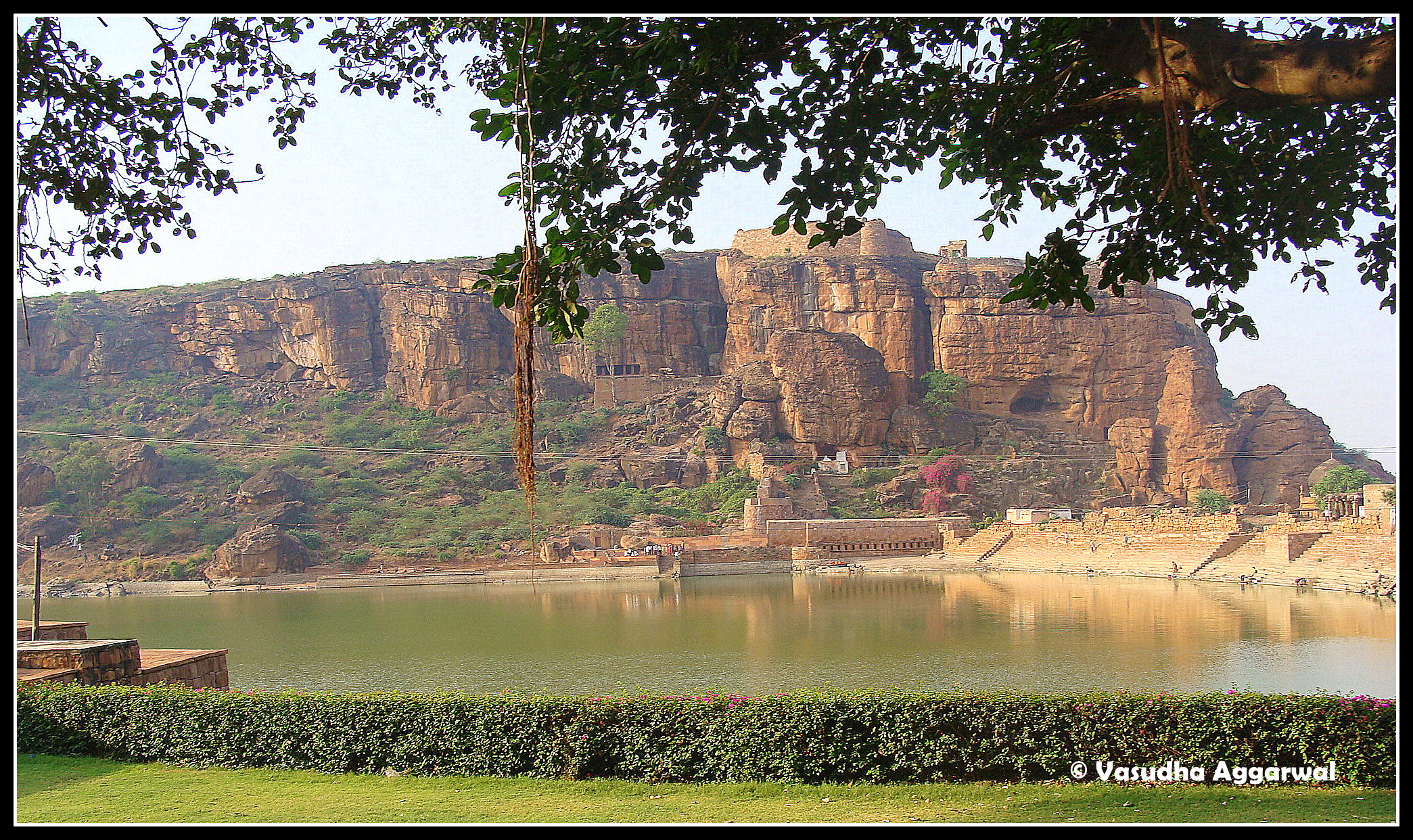 The caves overlook Agasthya Tirtha tank and the Bhuthnath temple which is situated like a jewel at the mouth of lake. Its a stunning panorama and an unforgettable sight. Undoubtedly, its a perfect abode for God.